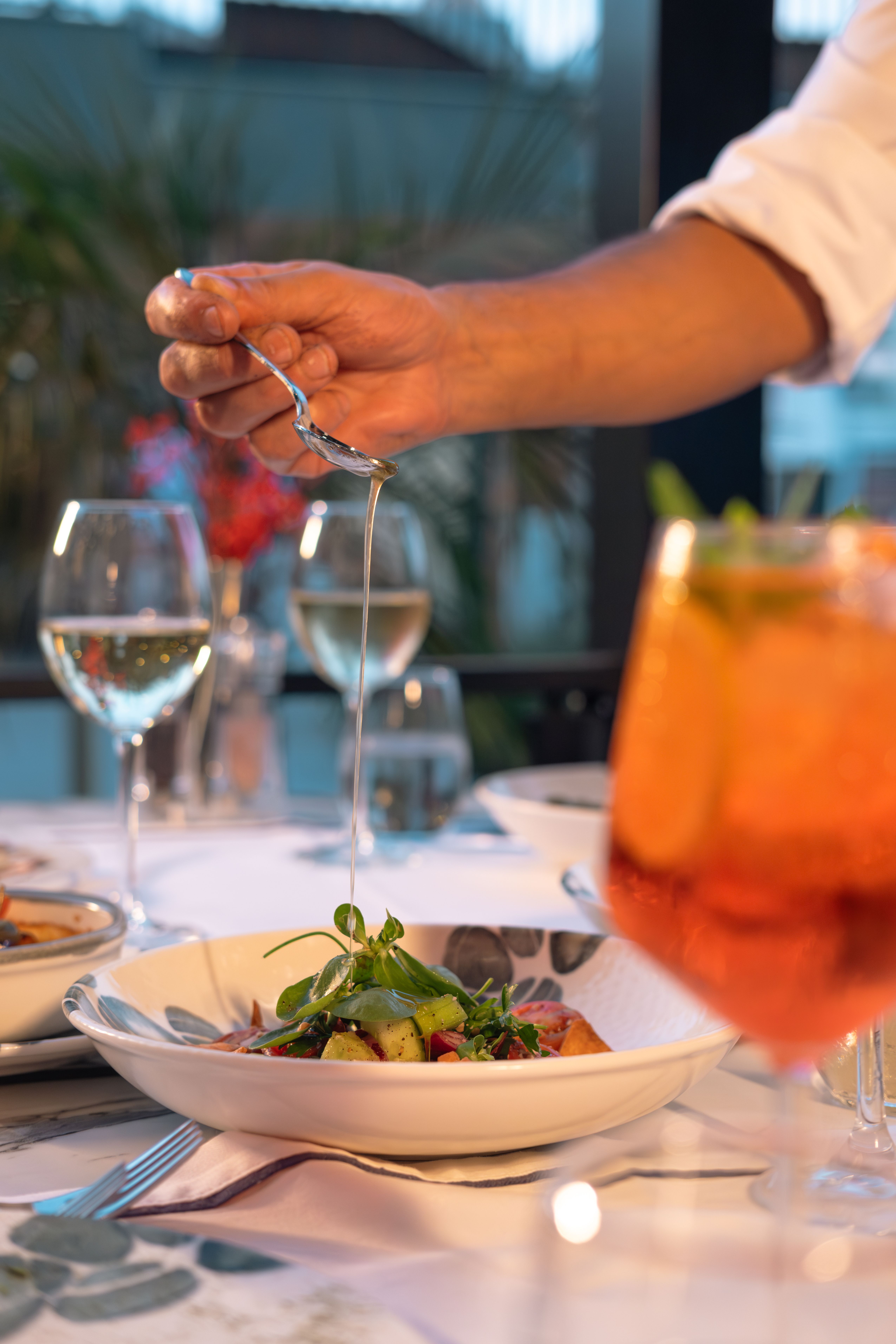 Unser Restaurant bringt die frischen und raffinierten Aromen des Mittelmeers direkt auf Ihren Tisch und hinterlässt einen unvergesslichen Eindruck auf Ihren Geschmacksknospen. Von Meeresfrüchten und Olivenöldishes bis hin zu saisonalem Gemüse und besonderen Desserts – wir bereiten mit Sorgfalt die einzigartigen Geschmäcker der mediterranen Küche zu und servieren sie Ihnen.